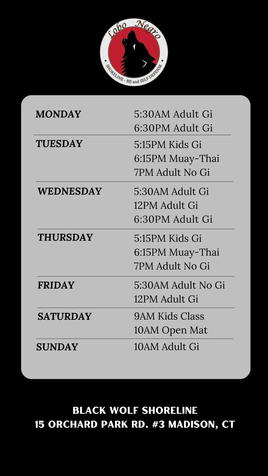 BLACK WOLF SHORELINE CURRENT CLASS SCHEDULE